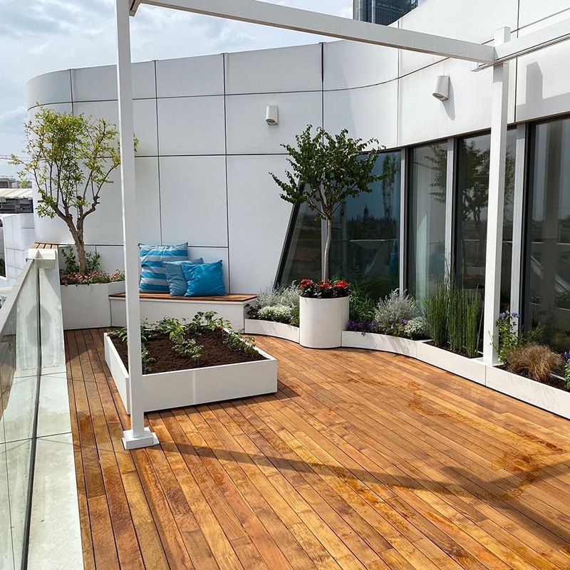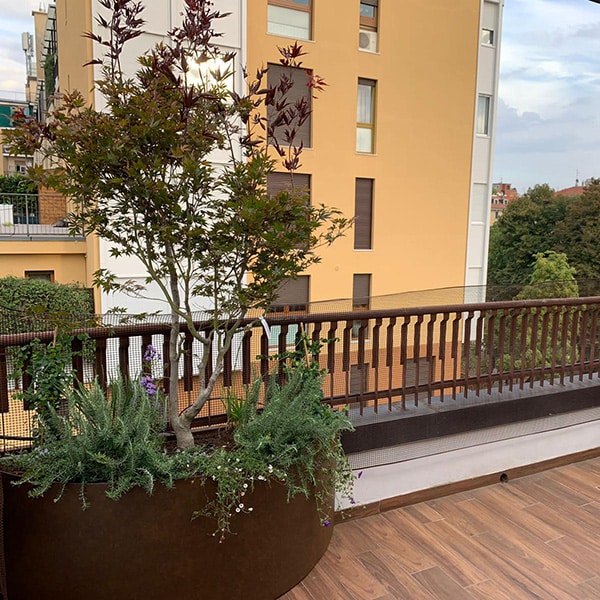In quanto parte attiva del processo di realizzazione di balconi, terrazzi, coperture verdi e giardini pensili ci occupiamo di PROGETTAZIONE degli spazi, IMPERMEABILIZZAZIONE delle superfici pronte ad accogliere i substrati per le coltivazioni, REALIZZAZIONE di vasi, fioriere e arredo SU MISURA.
